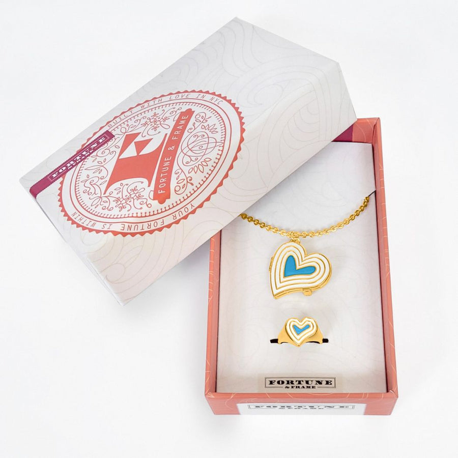 Deco Heart Locket & Signet Ring Gift Set (Ivory & Turquoise)