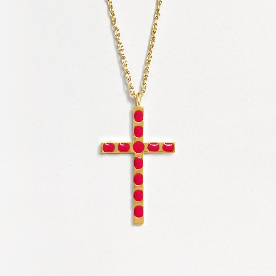 Embellished with a bold pink enamel, this necklace can be worn alone or layered with other favorites.