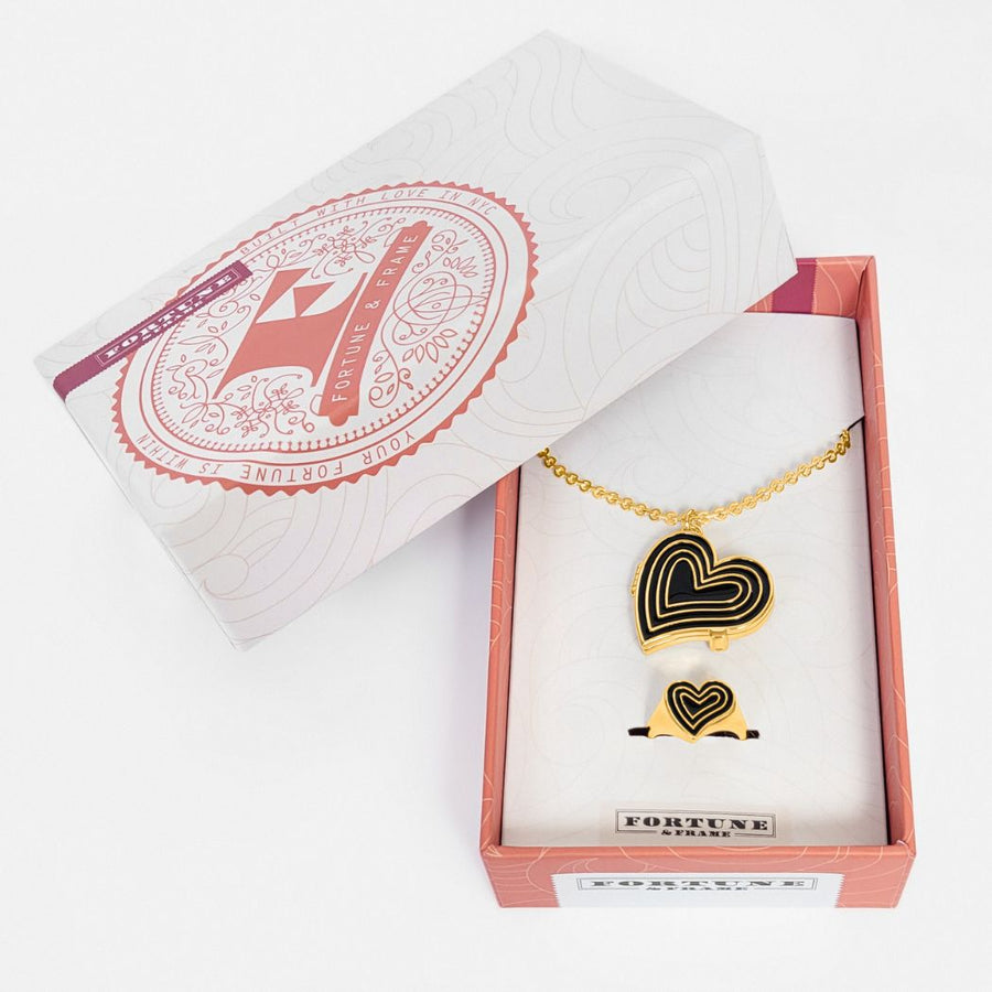 Deco Heart Locket & Signet Ring Gift Set (Onyx)