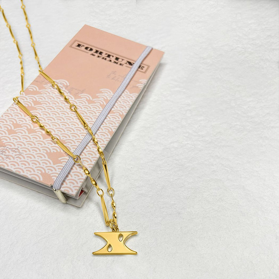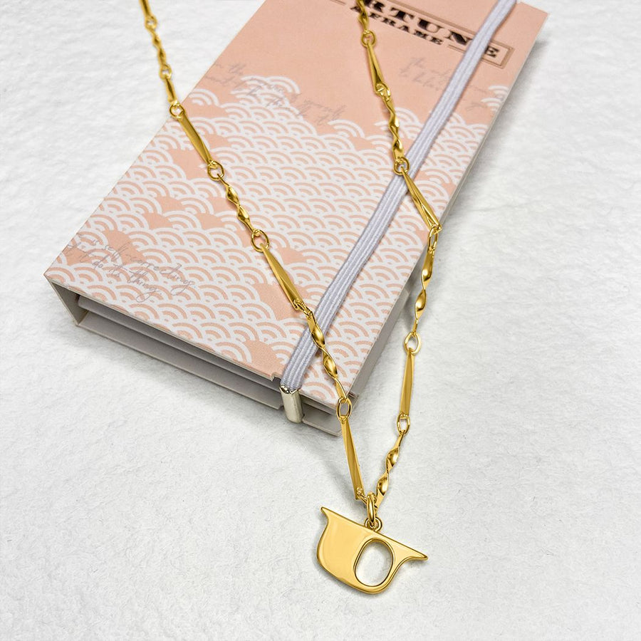 The letter R charm is embellished with subtle Mother of Pearl enamel detailing along the side and our signature wave design on the back. The twisted bar chain is adjustable so you can wear it as a choker or everyday pendant.